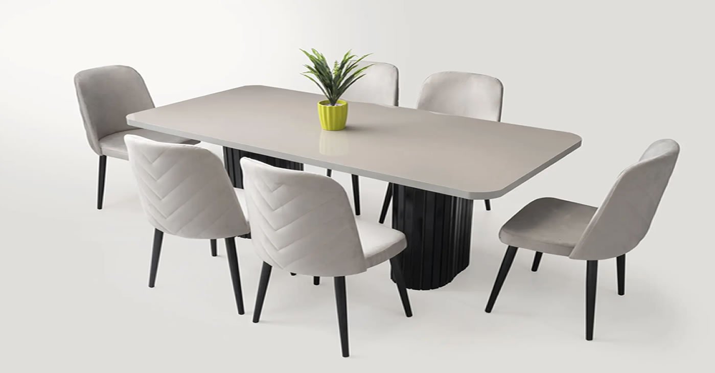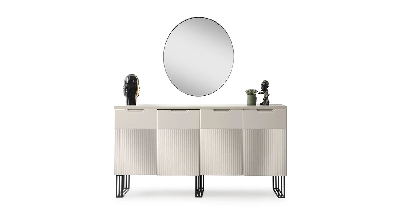 Our product consists of a set of Mirrorless Console, Console Mirror, Table and 6 Chairs. Our products are produced with first class workmanship and are made of wood and MDF. All color options are available. It has the feature of being opened and closed. | Console 180 - 45 - 82 | The table measures 92 - 150 - 90.